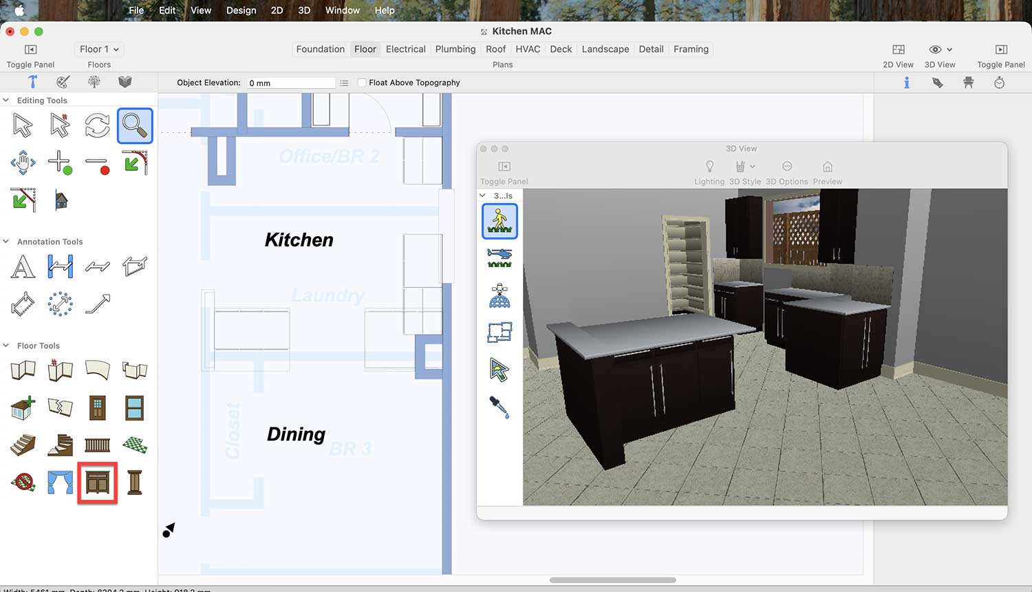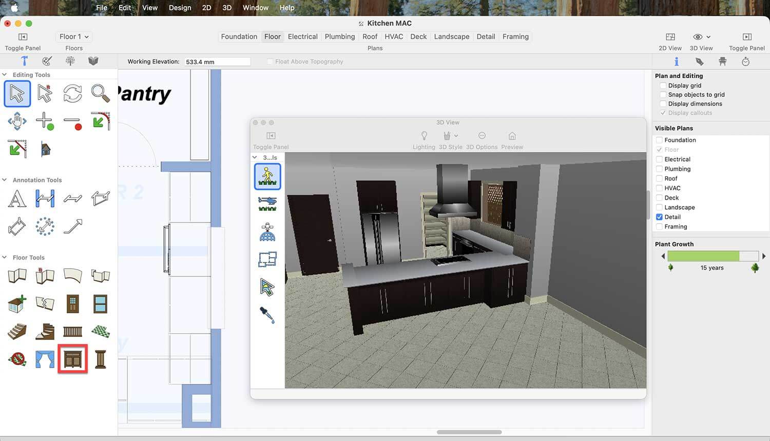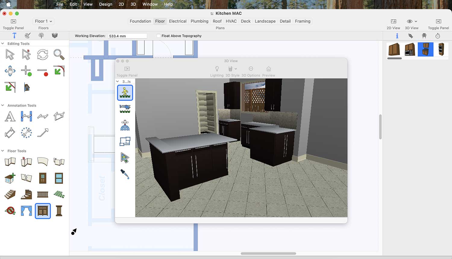 Now, to place a cabinet oven in your kitchen, first go to the Cabinet option in the Floor tab.