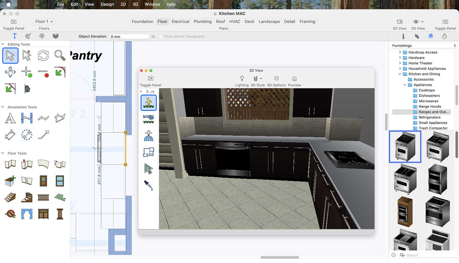 In the same way, we can place an oven in our kitchen. For this, go to Display Stock Library Items > Kitchen and Dining > Appliances > Ranges and Ovens.
